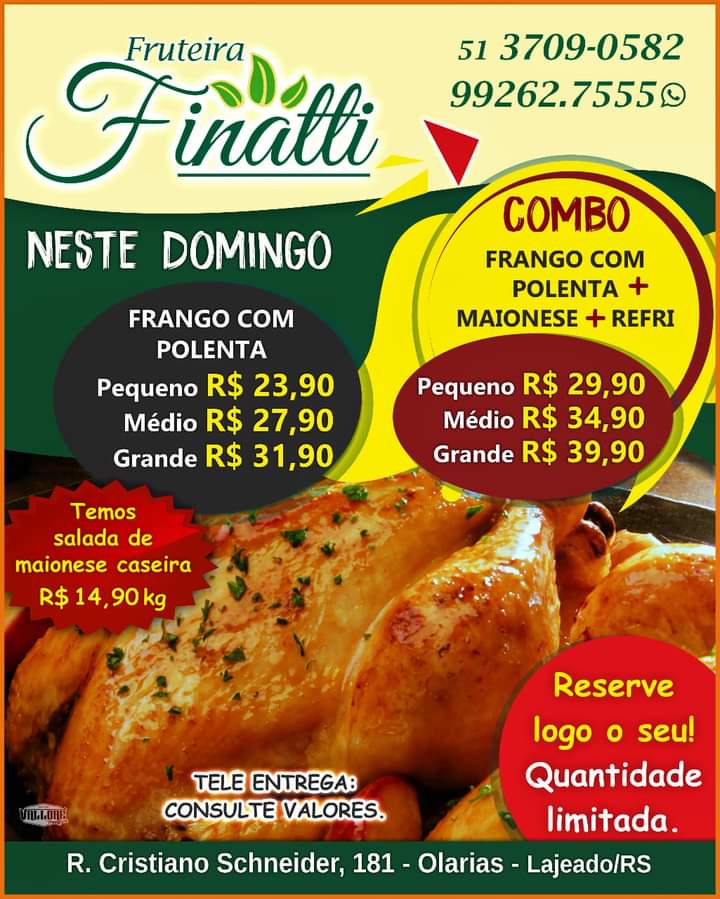 A Fruteira Finatti proporciona um atendimento personalizado de acordo com a necessidade de cada cliente. Localizada na Rua Cristiano Schneider, número 181, abre as portas de segunda a sábado das 8h às 11h45 e das 14h às 19, e aos domingos na parte da tarde.