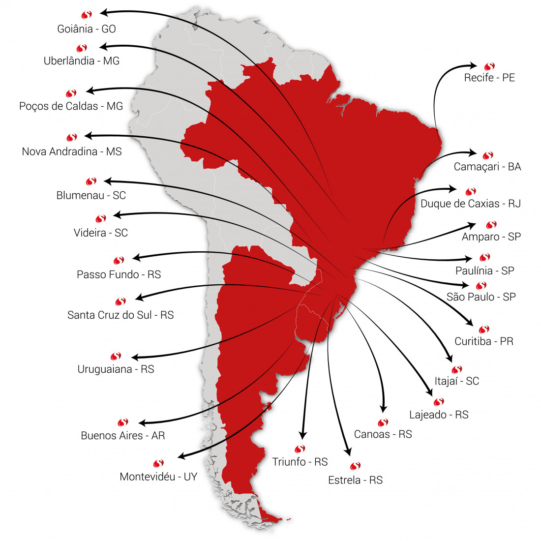 Com 23 filiais nos estados do RS, SC, PR, SP, RJ, MG, GO, MS, BA e PE, além de Argentina e Uruguai, a Scapini abrange uma malha logística extensa, que facilita as propostas comerciais e garante a competitividade no mercado. De acordo com o Gerente Comercial, Lucas Scapini, a principal característica da empresa é a personalização operacional e comercial para cada cliente, a agilidade e a pró-atividade.